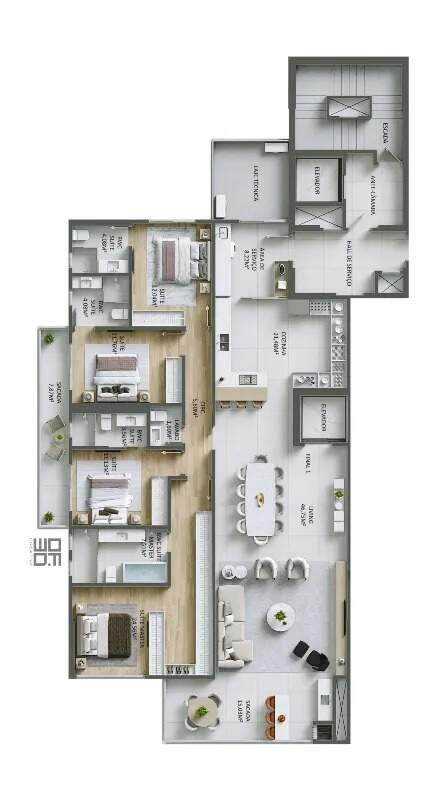 Este apartamento na Beira-rio foi projetado para oferecer amplitude, integração e luminosidade em todos os ambientes. O living se estende até a sacada integrada, criando um espaço contínuo com vista aberta para a Beira-rio. As quatro suítes garantem conforto e privacidade à família, com destaque para a suíte master, que conta com closet generoso e banheira voltada à ventilação natural.