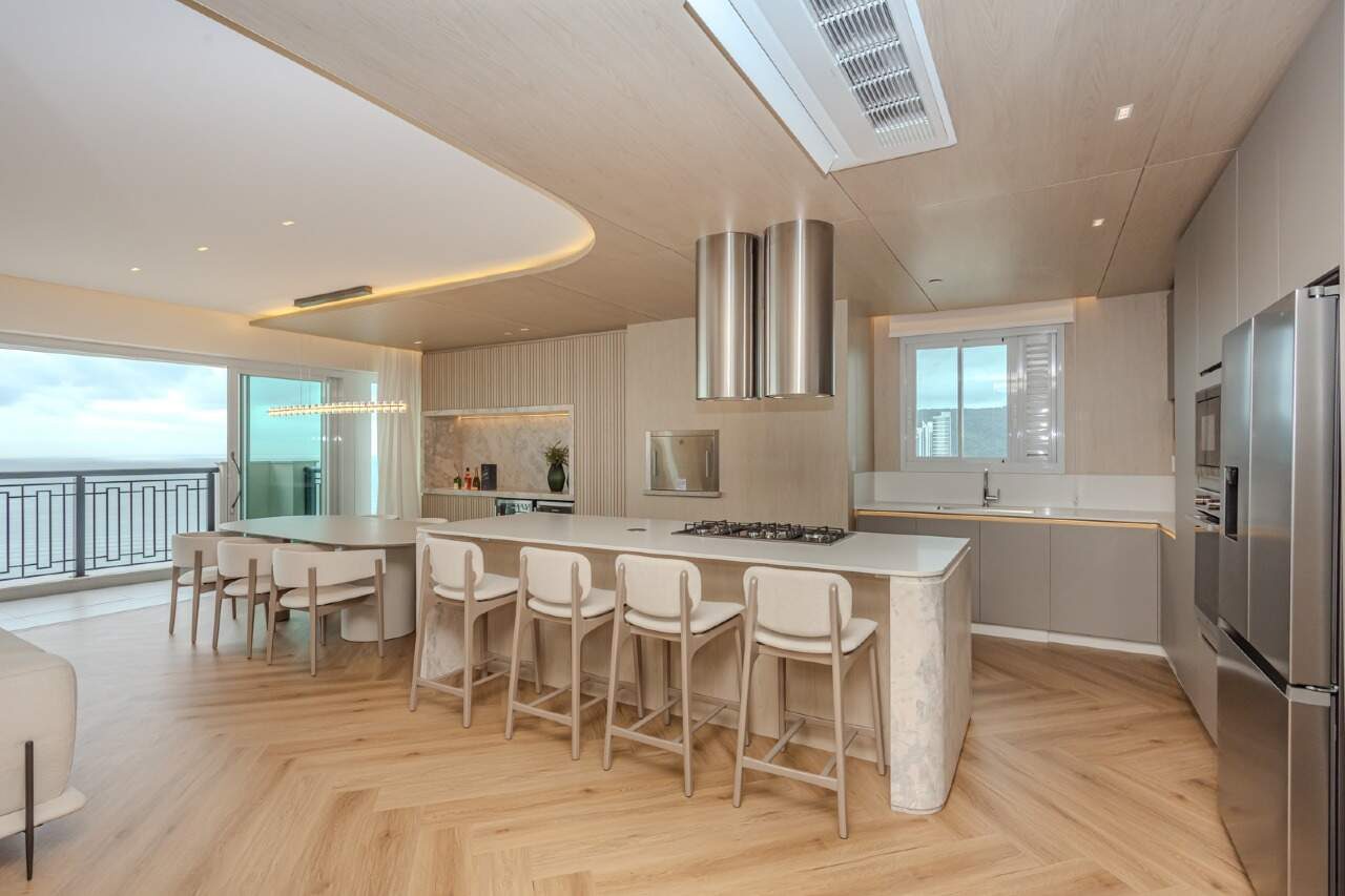 Localizado em andar alto, o apartamento proporciona uma experiência única de moradia, com vista panorâmica permanente do oceano e total privacidade — apenas uma unidade por andar.