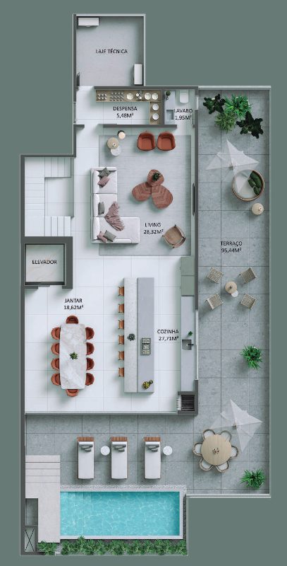 COBERTURA DUPLEX COM PISCINA DECK BEIRA-RIO - Uma cobertura exclusiva em Itajaí, com vista privilegiada para a Beira-rio e mais de 459m² de elegância e amplitude.