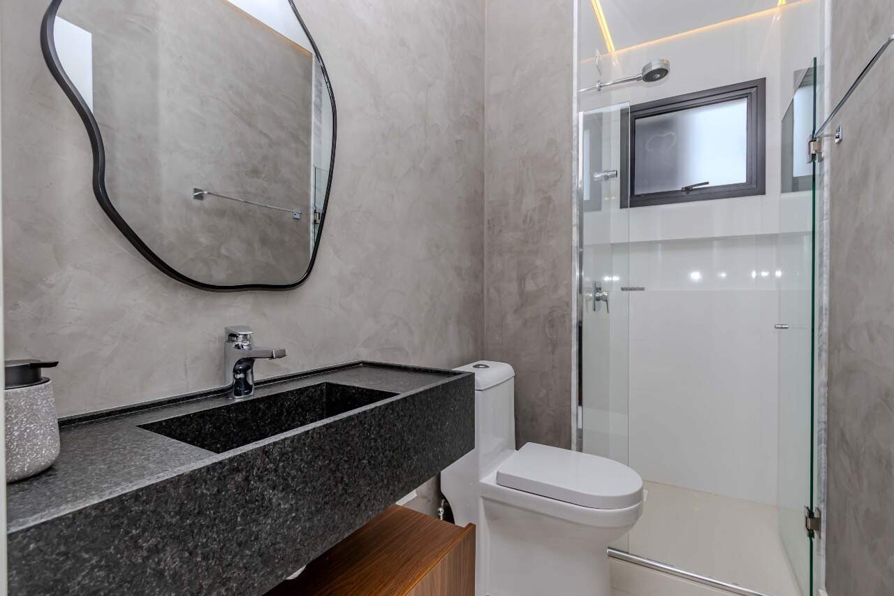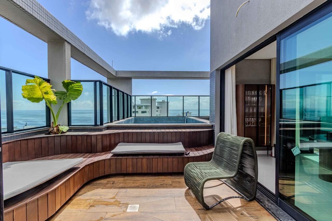 No pavimento superior, o destaque fica por conta do amplo terraço privativo, ideal para momentos de lazer e contemplação, além de espaço para área gourmet e piscina privativa, proporcionando uma experiência exclusiva de moradia. A unidade dispõe ainda de 3 vagas de garagem, garantindo conforto e praticidade no dia a dia.