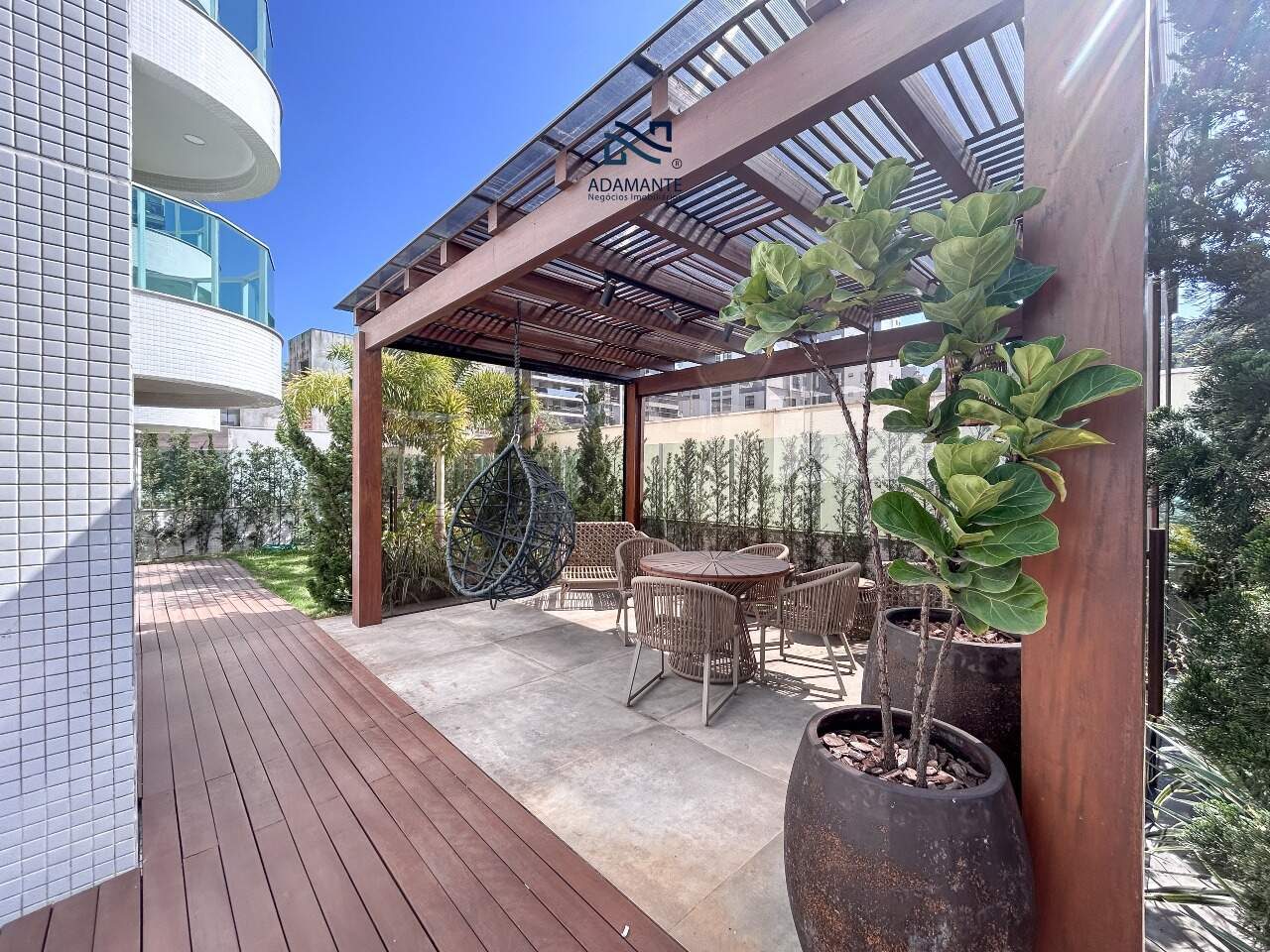 Este sofisticado garden duplex no Reserva Aroeira oferece uma experiência única de morar com conforto e contato direto com a natureza. A ampla área social integra sala de estar, jantar e cozinha gourmet com churrasqueira a carvão, criando um ambiente perfeito para receber amigos e familiares. O destaque fica por conta do terraço privativo, ideal para momentos de lazer ao ar livre.